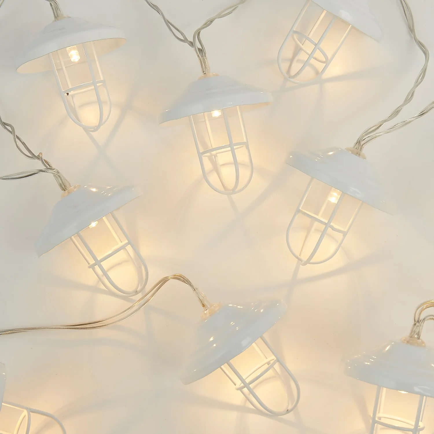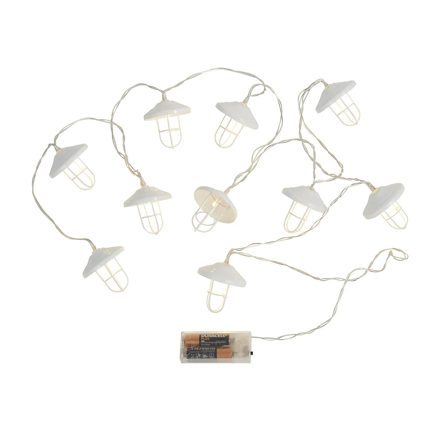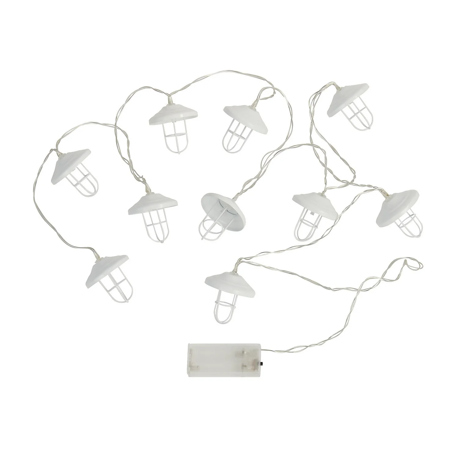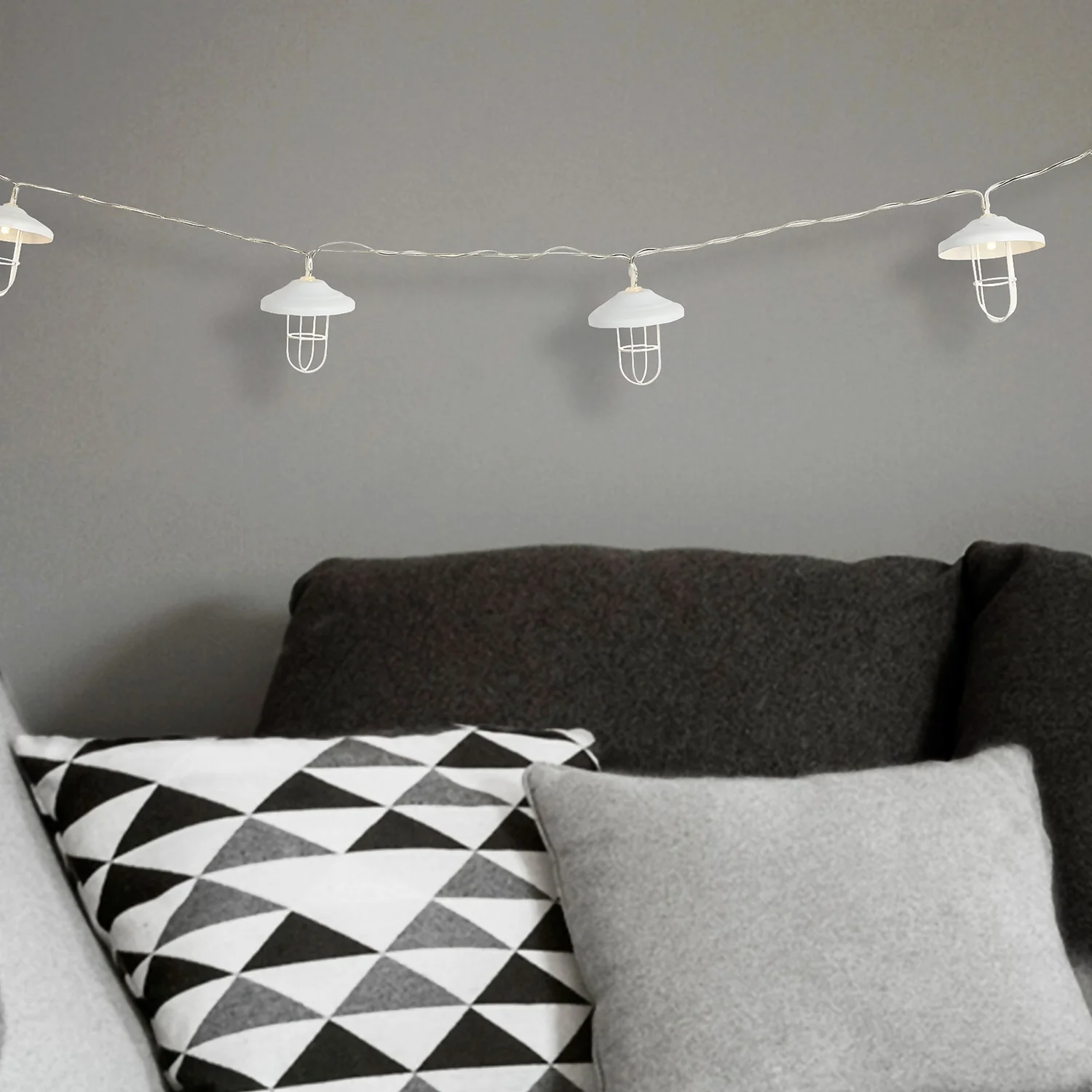 10 traditionally inspired white miniature lanterns hang from a clear cable, adding a warm white glow perfect for bedrooms and modern interiors.