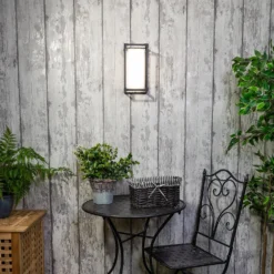 Make your exterior stand out with the unique styling of this LED Outdoor Box Frame Wall Light. The integrated LED sits back in the die-cast aluminium frame, giving an unusual twist to the traditional lantern-inspired designs. Perfect for lighting up entrances and exits.
