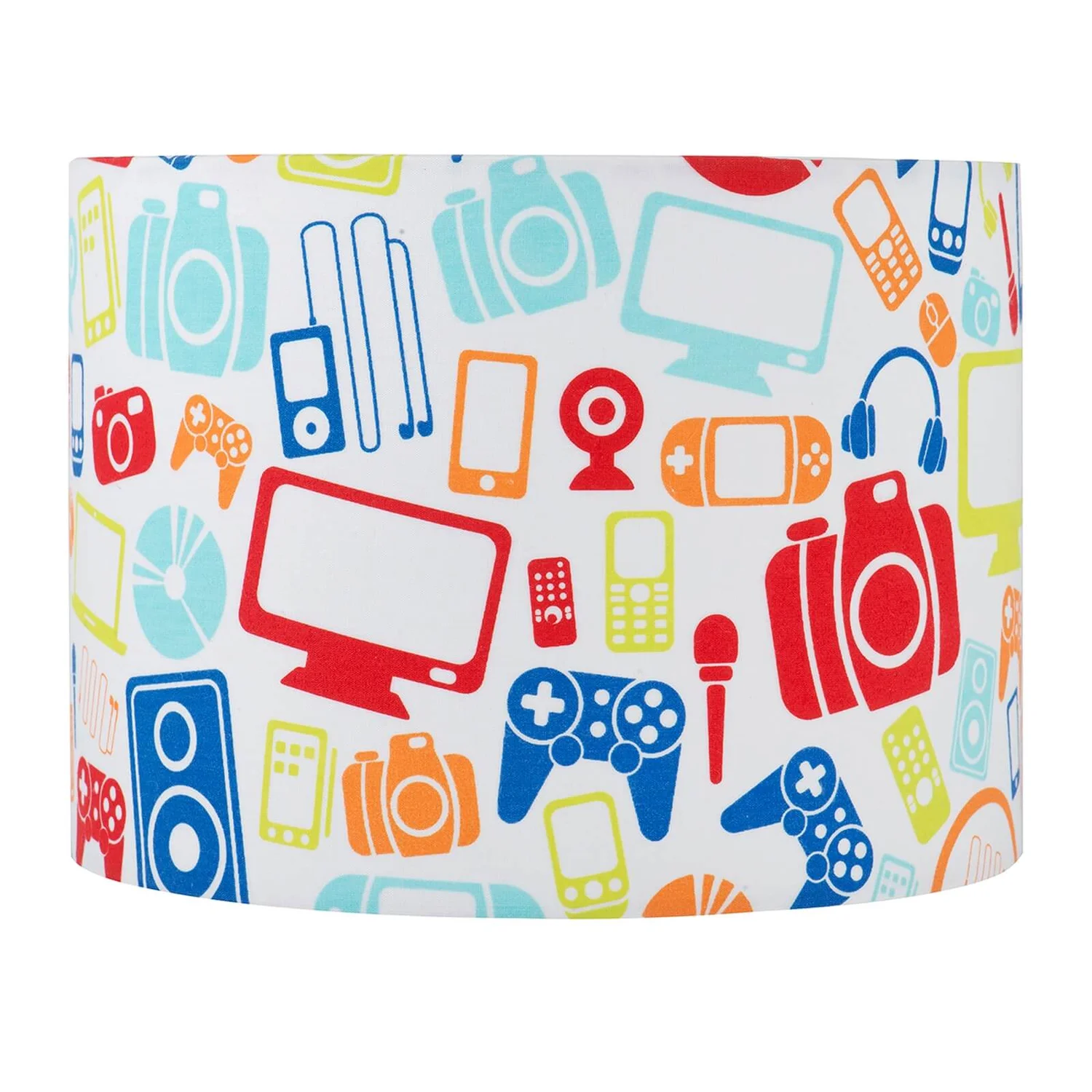 The gaming design lamp shade is a fun design to compliment a child’s room.