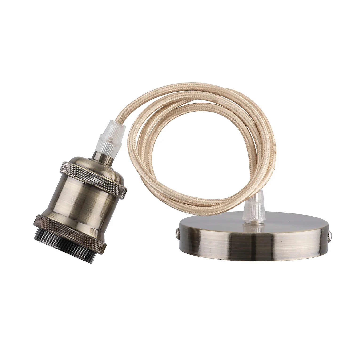 It’s all in the small detail! Complete your dream lighting look with our glamourous antique brass decorative pendant set. The set comes complete with ceiling rose, flex and lamp holder and is perfect for displaying bulbs and lamp shades. Made from metal this premium alternative to the standard white pendant adds a touch of class to your room.